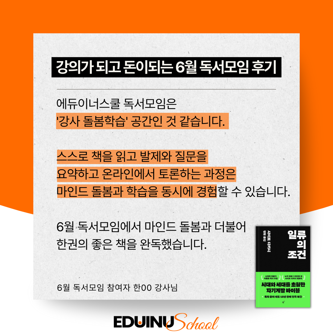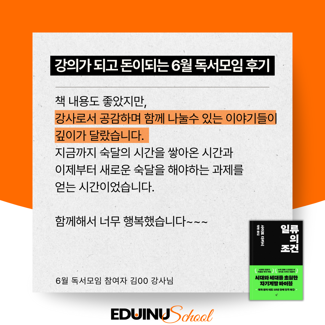 '에듀이너스쿨 독서모임은 다양한 분야의 강사들과 함께
