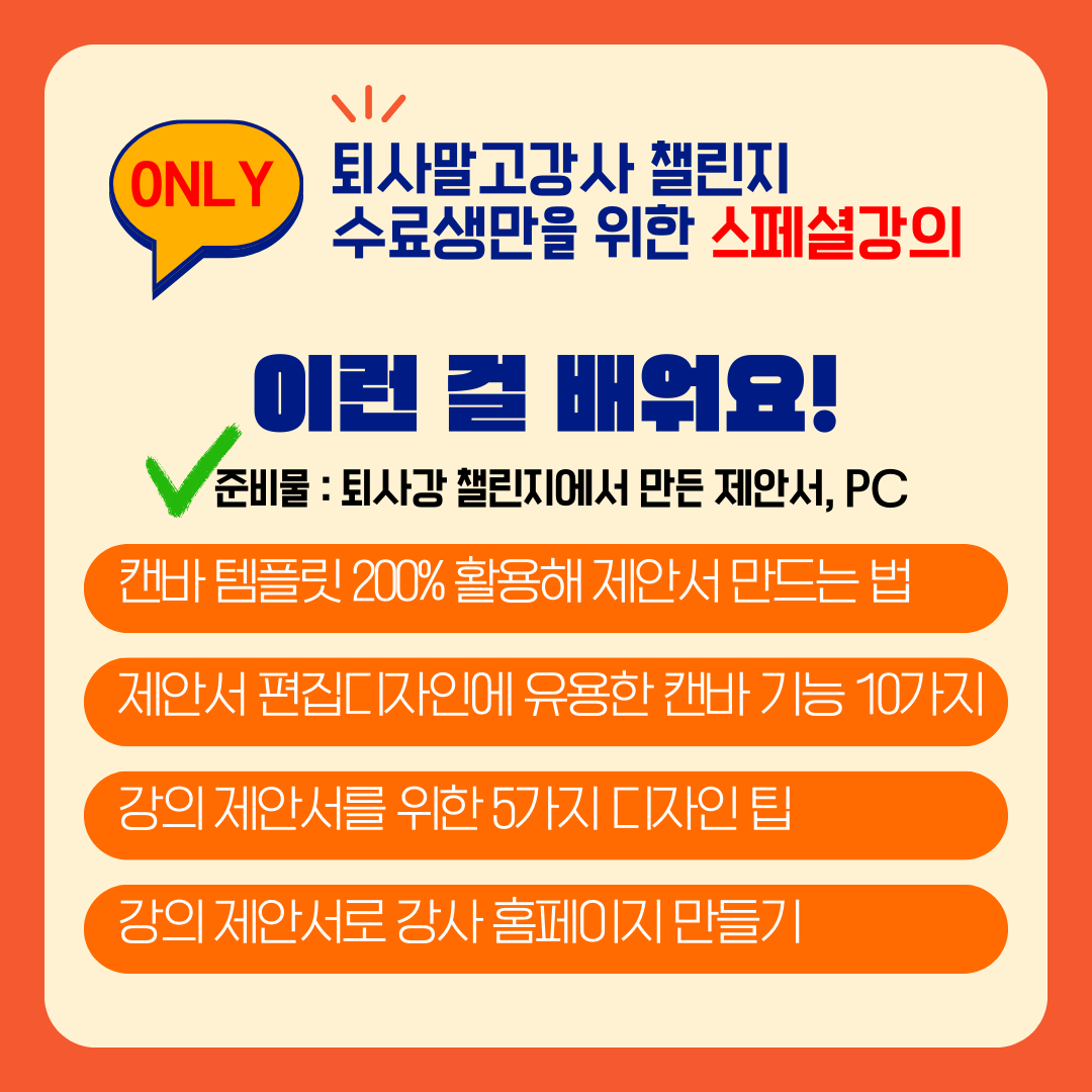 < Only 퇴사말고강사 챌린지 1-9기 수료생만을 위한 스페셜강의 >