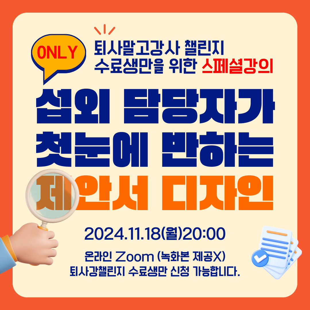 [only 퇴사강챌 수료생]11/18 스페셜 강의 X 섭외담담자가 첫 눈에 반하는 제안서 디자인BESTMDHOTSOLDOUT