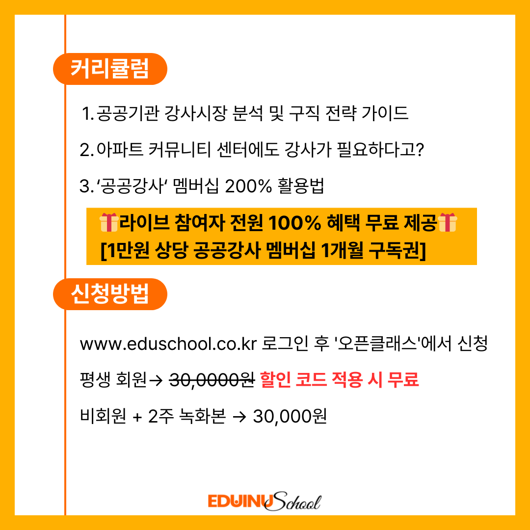 - 실시간 라이브 참여자 전원 [1만원 상당 공공강사 멤버십 1개월 구독권 ]