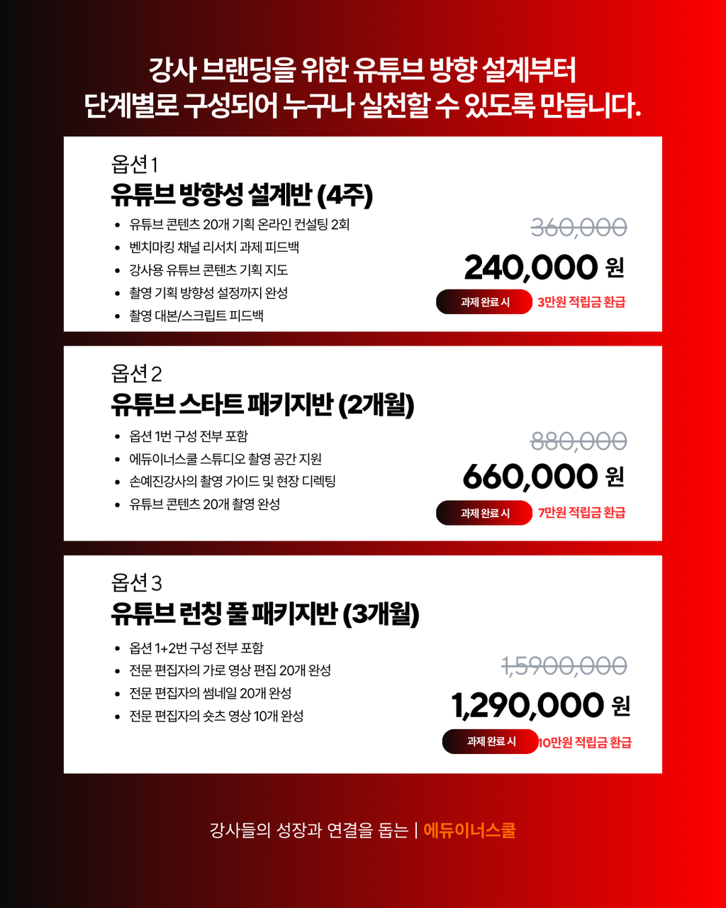 옵션 1 [유튜브 방향성 설계반] (정가 360,000 → 할인가 240,000)