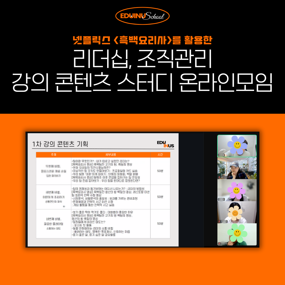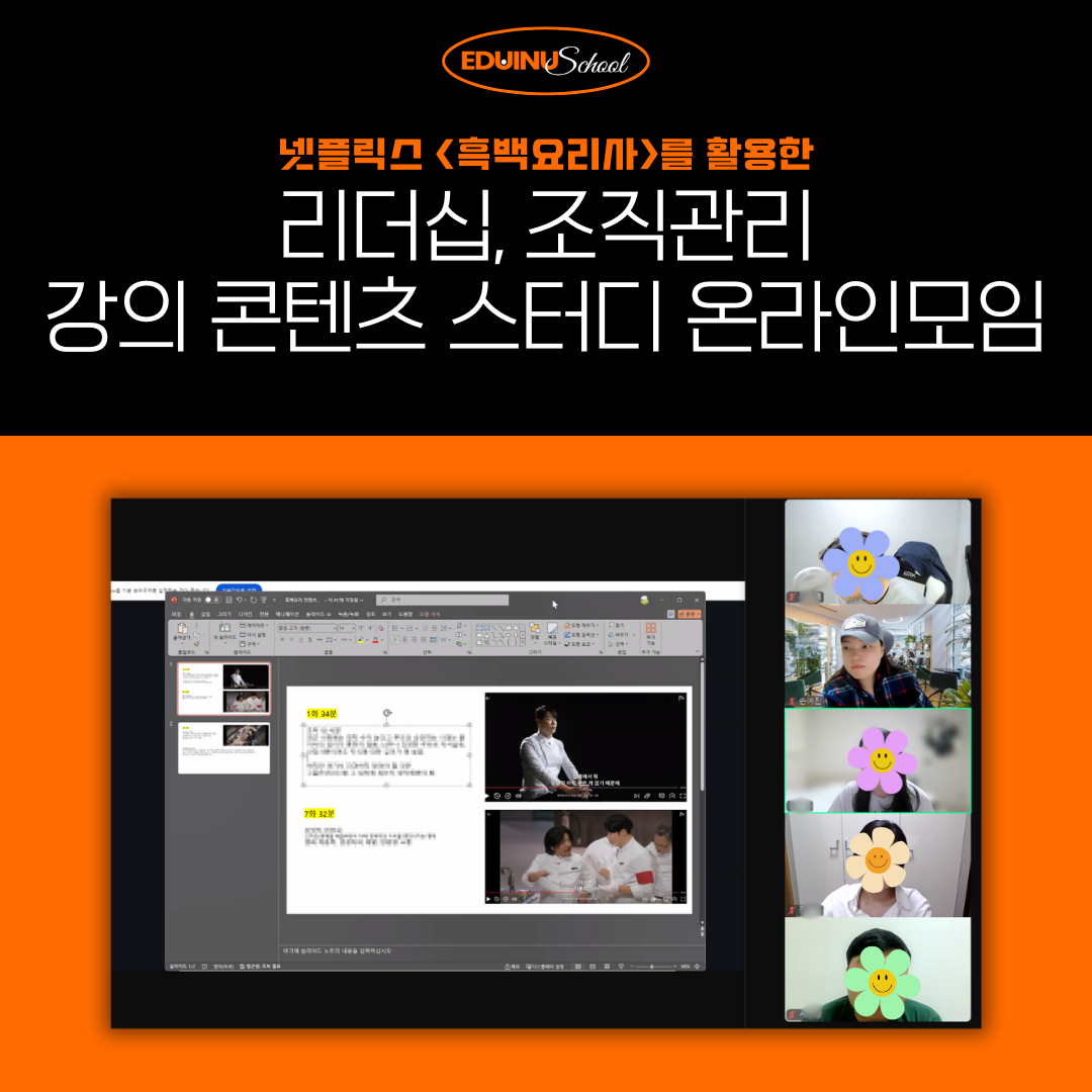 지난 <흑백요리사를 활용한 리더십> 강의 콘텐츠 스터디 모습